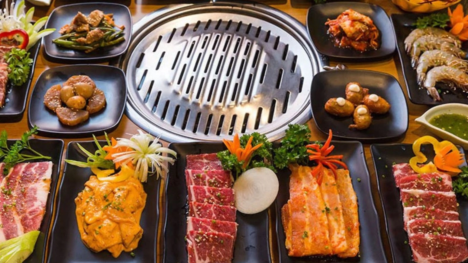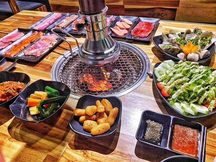 Bên cạnh các món nướng hấp dẫn, quán còn phục vụ đầy đủ món ăn kèm như cơm trộn, mì lạnh, canh kim chi và nhiều loại lẩu đậm vị. Không gian sang trọng, rộng rãi, rất phù hợp cho các buổi tụ họp bạn bè hoặc gia đình muốn trải nghiệm phong cách nướng chuẩn Hàn.