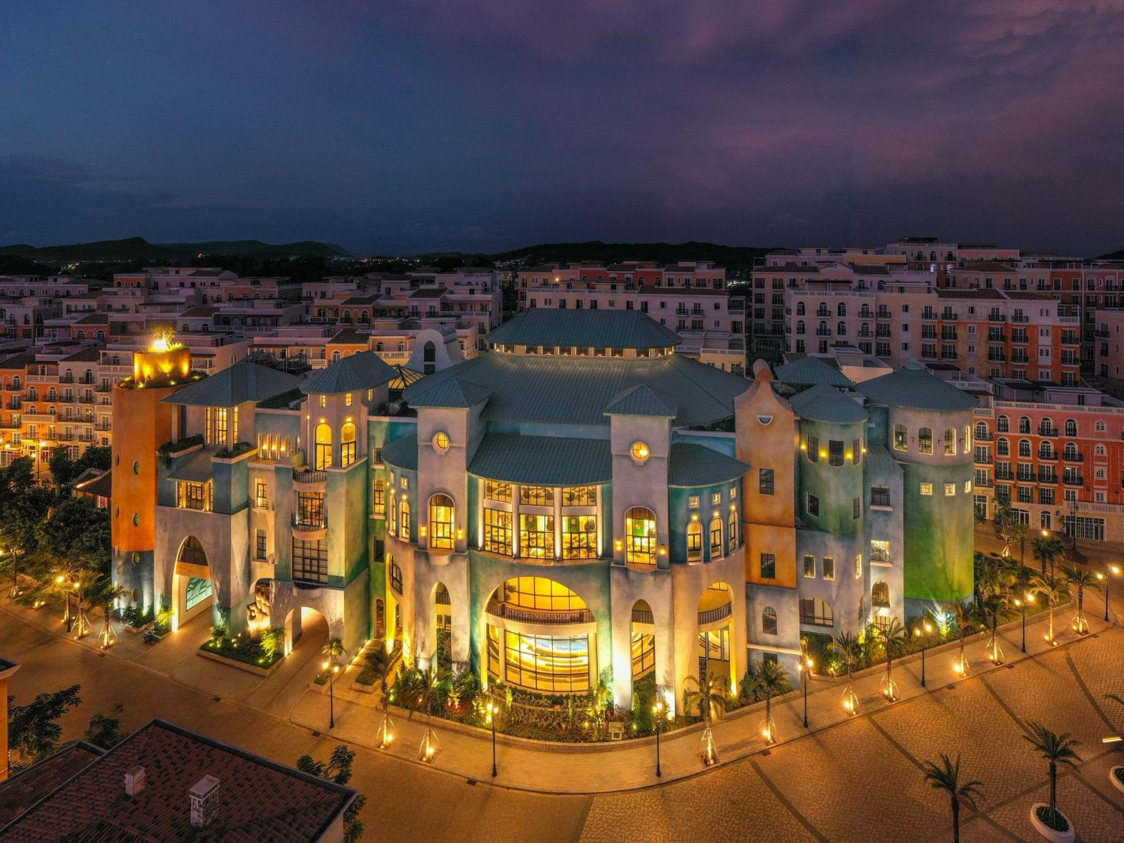 日落小鎮(Sunset Town)是旅客造訪 富國島 時最受歡迎的景點之一。整個區域以地中海風格打造,擁有色彩柔和的建築外觀、寬闊的濱海廣場,以及充滿藝術感的街道,營造出宛如歐洲海岸小鎮般的氛圍。